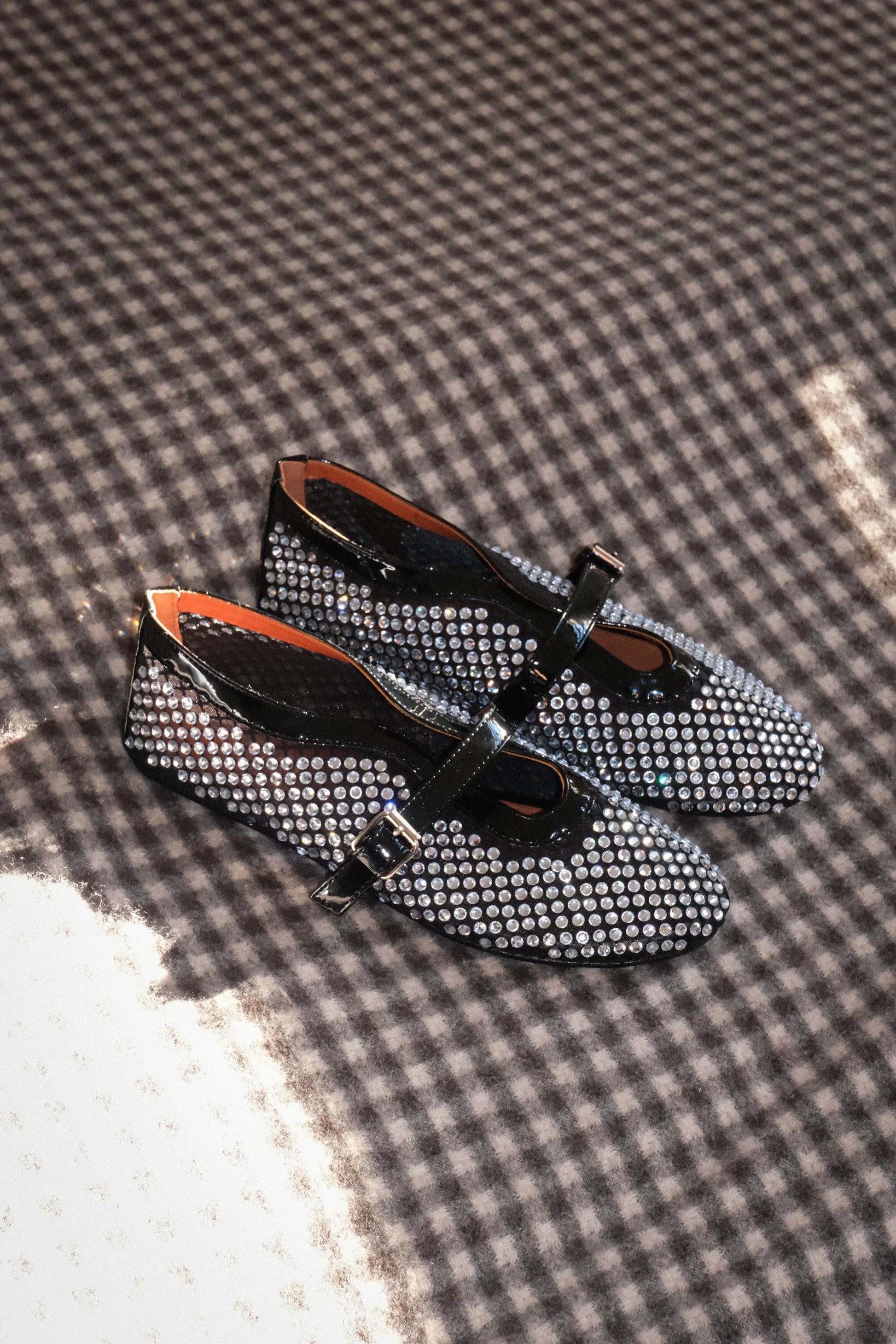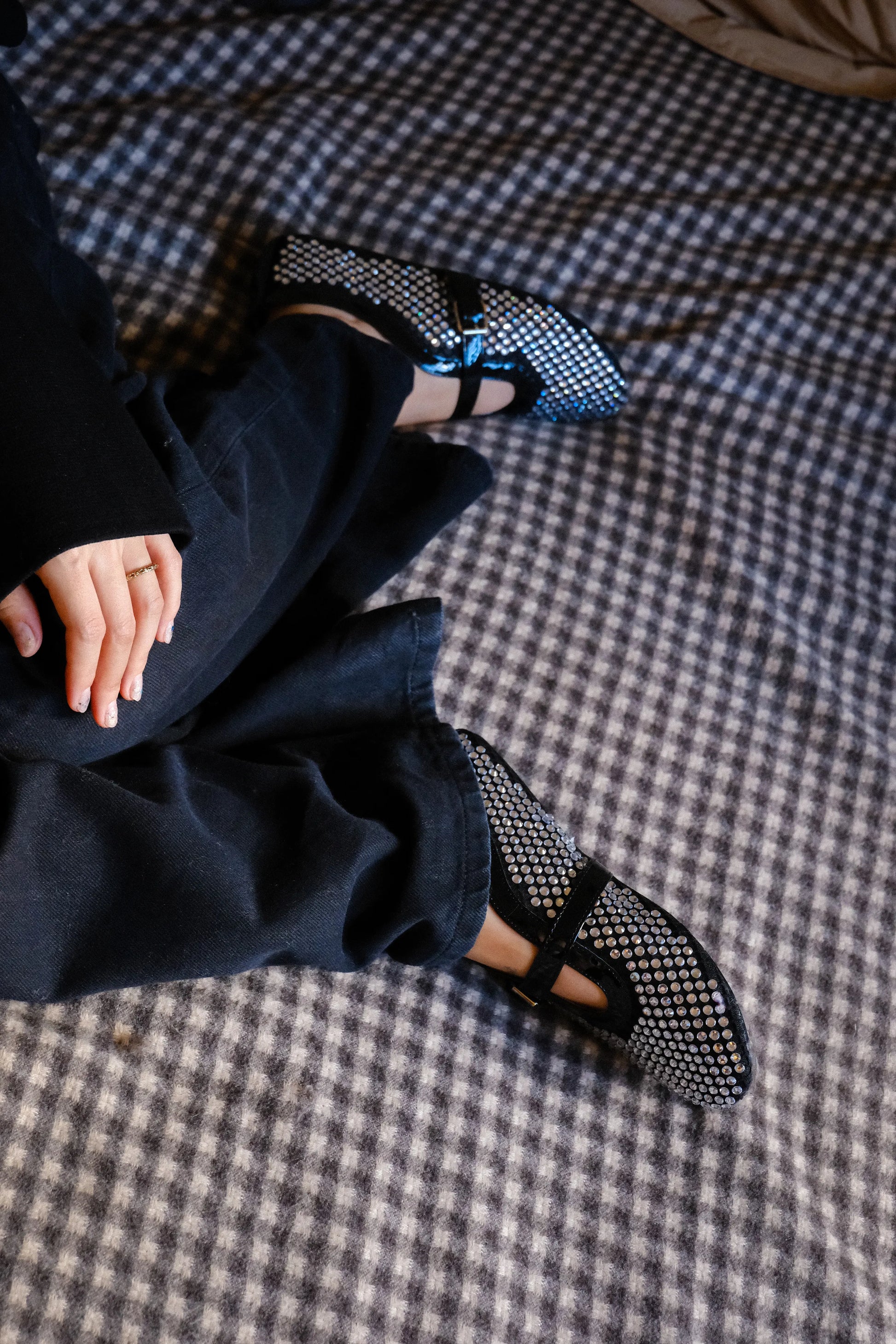 The Hannah model dazzles with its metallic finish and crystal applications that cover the entire surface, creating a captivating sparkle.